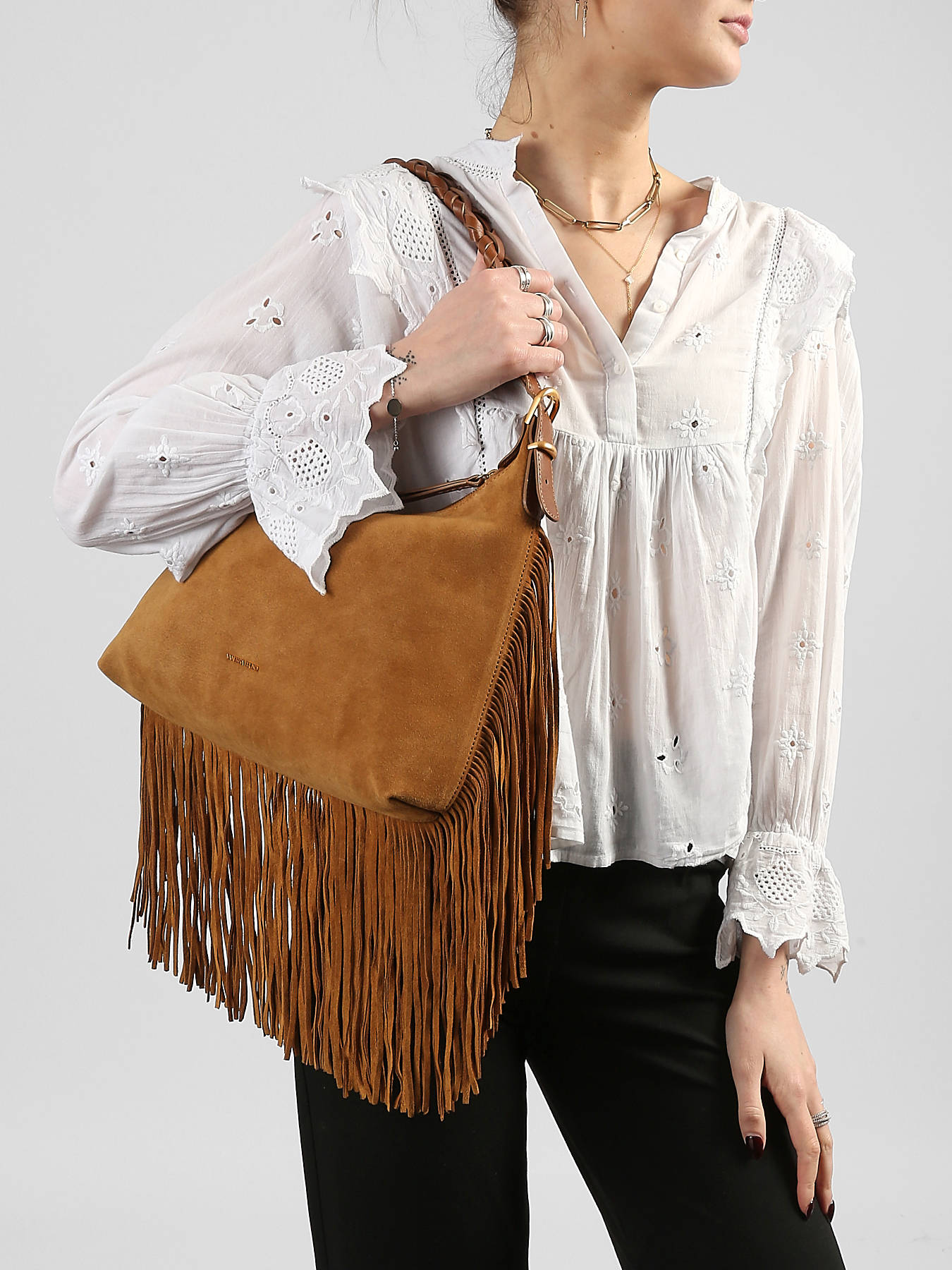 Schoudertas l jess in suède leder
