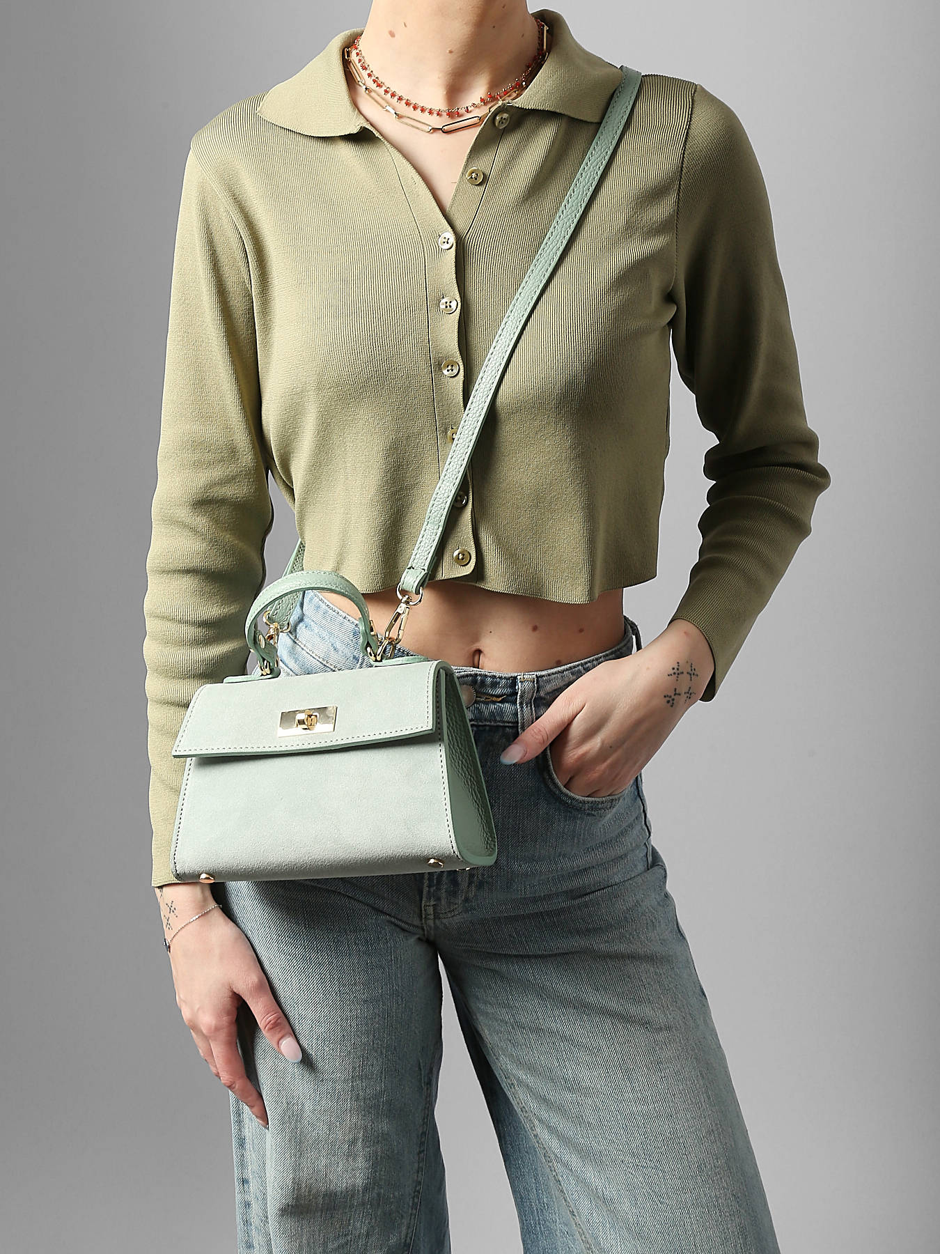 Cross body tas velvet caviar leder
