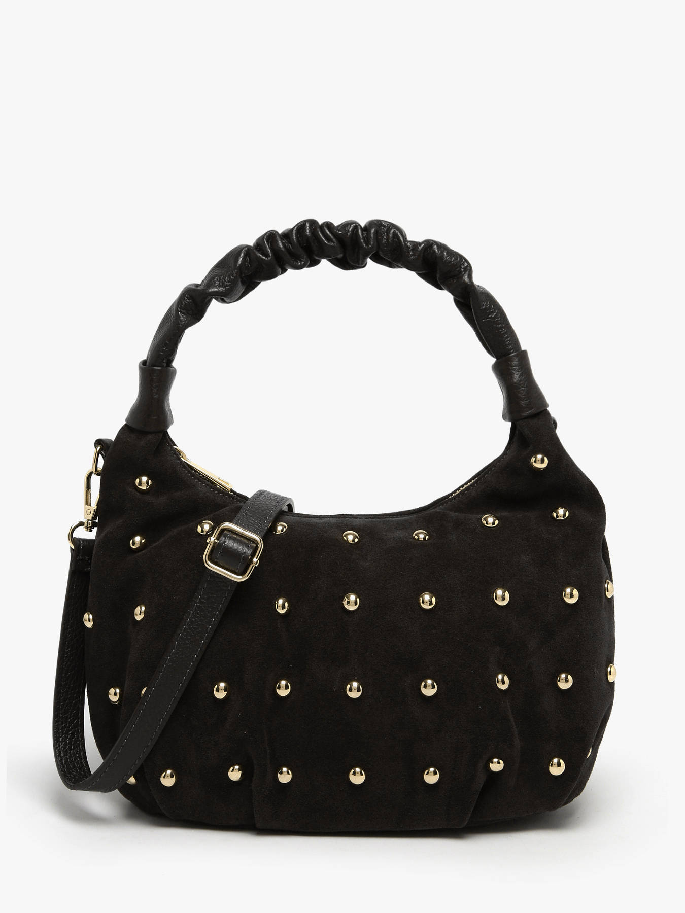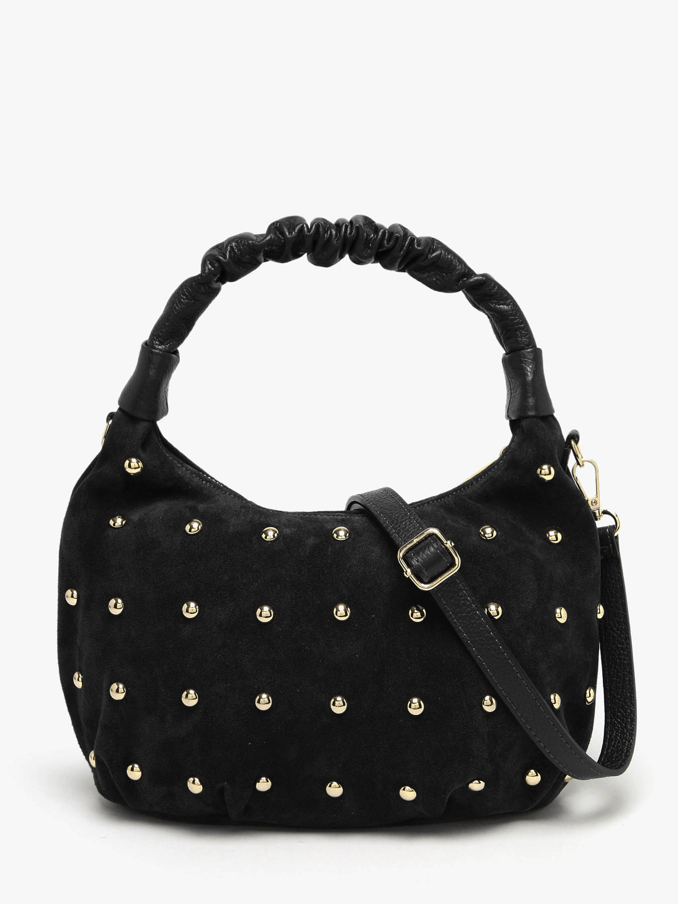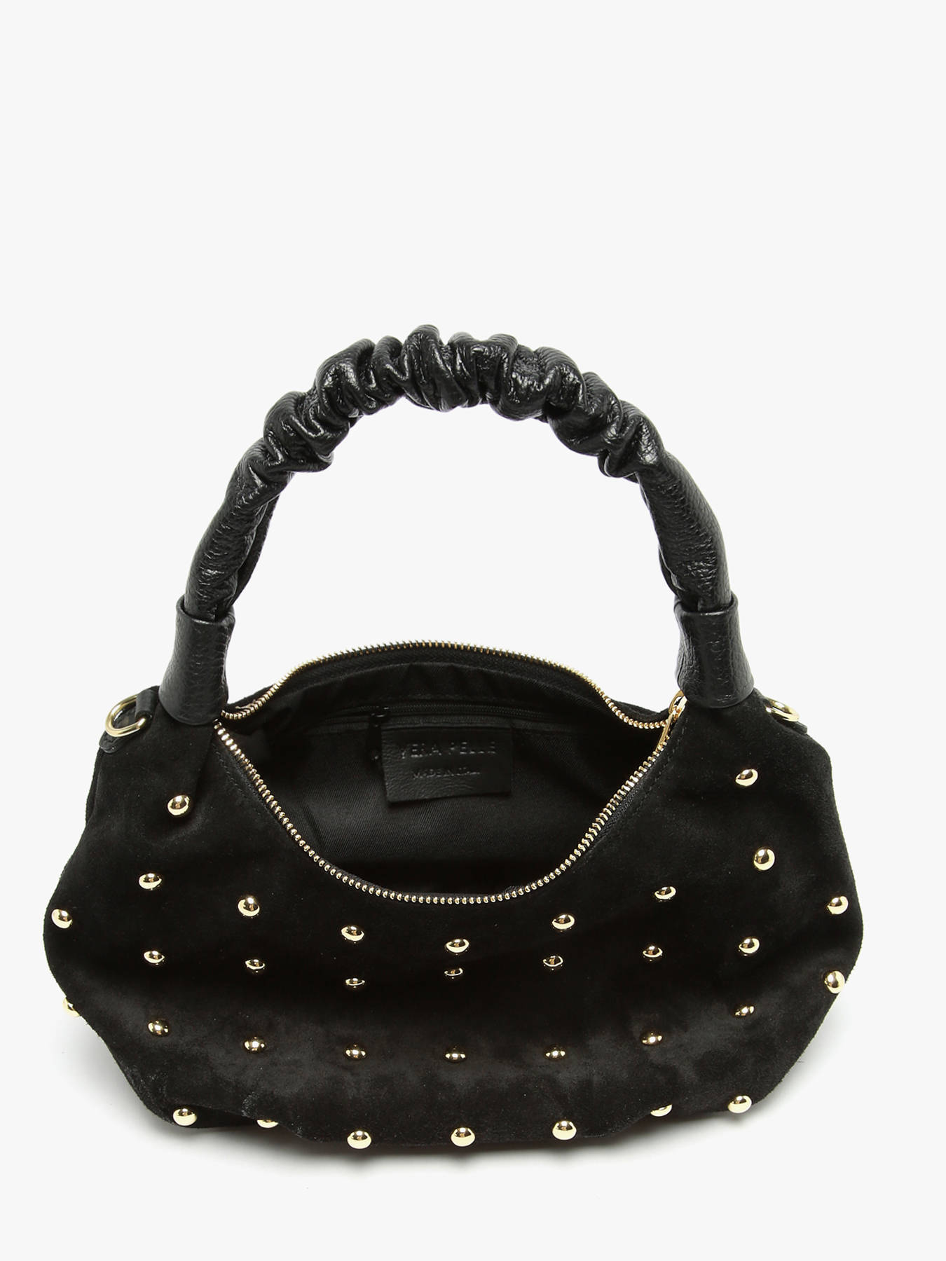De schoudertas VELVET STUDS MILANO, gemaakt van rundsleer, combineert elegantie en functionaliteit. De buitenkant van glad leer is voorzien van een ritssluiting die de veiligheid van je persoonlijke spullen garandeert. Het handvat van 16 cm hoogte zorgt voor comfortabel dragen in de hand, terwijl de verstelbare en afneembare schouderriem de mogelijkheid biedt om de tas als cross body tas te dragen, afhankelijk van je wensen en behoeften. Binnenin bestaat de tas uit één ruim vak, ideaal om je essentials georganiseerd te houden zonder rommel. Deze veelzijdige en chique tas is perfect om al je outfits te begeleiden, van dagelijks gebruik tot meer geklede gelegenheden, en voegt een verfijnde en moderne toets aan je stijl toe.